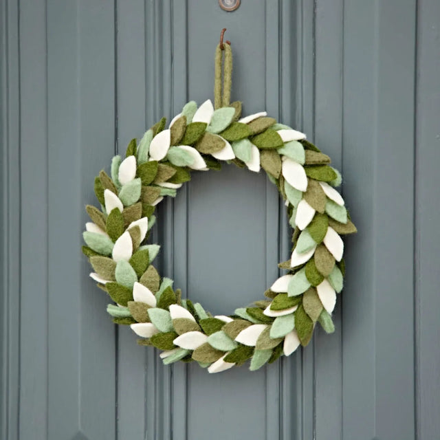 Green felt Christmas wreath is backordered and will ship as soon as it is back in stock.